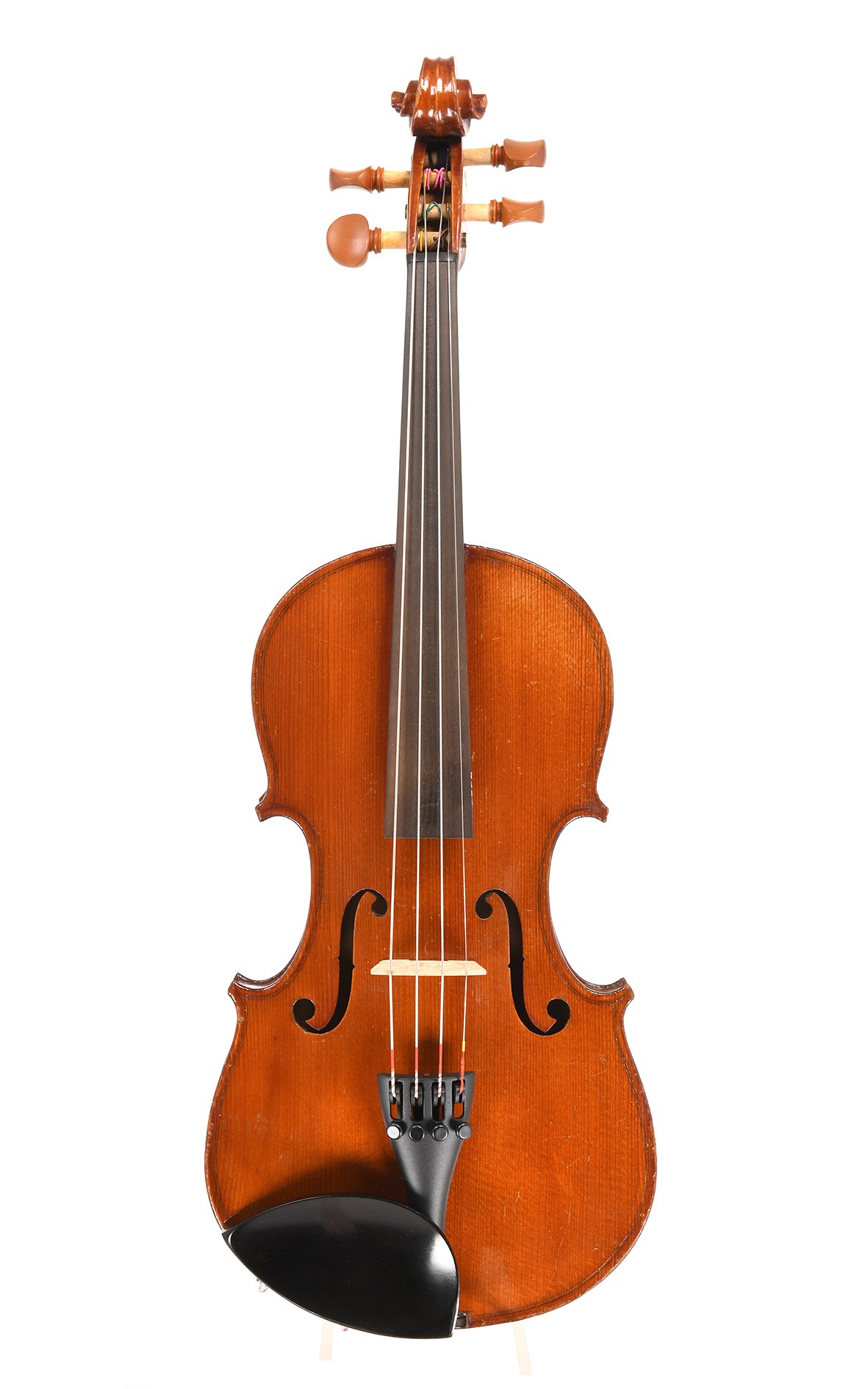 „Médio Fino“ war eine Marke des berühmten Herstellers Jérôme Thibouville-Lamy (JTL) in Mirecourt, unter der im späten 19. Jahrhundert sehr beliebte Geigen angeboten wurden. Mit ihrem einfacheren Standard, aber sehr guten Spiel- und Klangeigenschaften waren die Instrumente dieser Reihe insbesondere für junge Spieler geeignet. Auch die hier angebotene Médio-Fino 1/2 Geige ist mit ihrer antiken Erscheinung und ihrem unaufdringlichen, warmen und doch hellen, süßen Klang ein höchst attraktives Instrument. Es wurde nach dem bewährten Stradivari-Modell gebaut und mit einem typischen, dunkel-bordeauxroten Spirituslack versehen. Komplett in unserer Geigenbauwerkstat überholt und eingestellt, bieten wir diese Geige in sehr gutem, spielfertigen Zustand an.