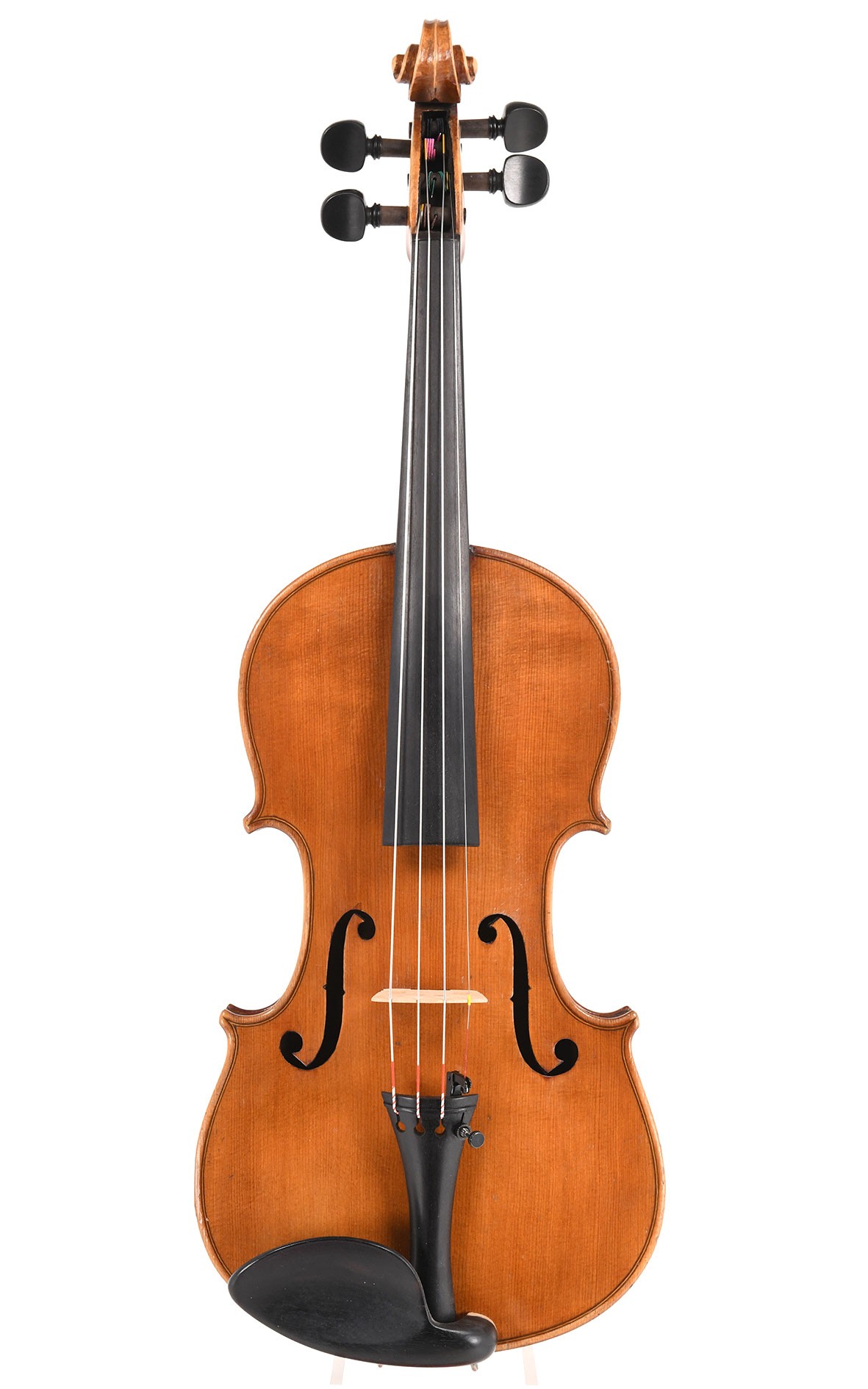 Diese qualitätvolle deutsche 3/4 Geige wurde nach alter Markneukirchener Bauart gefertigt. Die 3/4 Violine wurde um Jahr 1920 in einer unbekannten sächsischen Werkstatt in Handarbeit gebaut. Die Decke und der Boden der 3/4 Geige zeigen mit einer sanften Hohlkehle die typische, mittelhohe Wölbung dieses traditionellen Modells nach Stradivari. Zu der mitteljährigen Fichte der Decke bildet die...