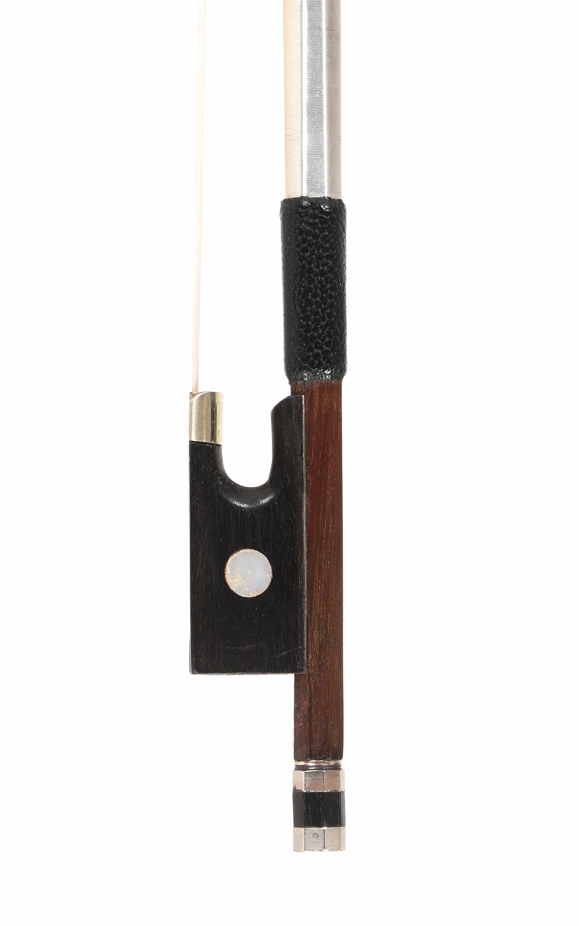 Jean-Joseph Martin (1837–1910) war einer der besten Meister im französischen Streichbogenbau der zweiten Hälfte des 19. Jahrhunderts, dem trotz der vorzüglichen Qualität seiner Arbeit ein nachhaltiger geschäftlicher Erfolg versagt blieb. Auf dem kurzen, glanzvollen Höhepunkt seiner Laufbahn arbeitete er für namhafte Geigenbauer wie Jean-Baptiste Vuillaume und Joseph Hel; zu seinem künstlerischen Umfeld gehörten in der besten Zeit seiner Werkstatt Talente, die später selbst einen Platz in der Musikinstrumentengeschichte einnehmen sollten, darunter etwa Joseph Arthur Vigneron père. In diesem Kontext entstand auch der hier angebotene Geigenbogen, der als vollblütiger französischer Violinbogen in der Größe 3/4 unbedingten Seltenheitswert beansprucht. Seine exzellenten Spiel- und Klangeigenschaften erschließen jungen Talenten musikalische Entwicklungsmöglichkeiten, zu denen sie sonst erst Jahre später mit 4/4 Geigenbögen Zugang erhalten. Der charakteristisch gearbeitete Frosch aus feinem Ebenholz mit Perlmutt-Auge lässt an der Herkunft dieses Geigenbogens keinen Zweifel aufkommen. Seine aktive und feste, angenehm leichte Stange aus erstklassigem rotbraunem Fernambuk zeichnet sich durch ihre hohe Aktivität aus und erzeugt einen strahlenden Klang jener Qualität, der französische Geigenbögen ihren hervorragenden Ruf verdanken.