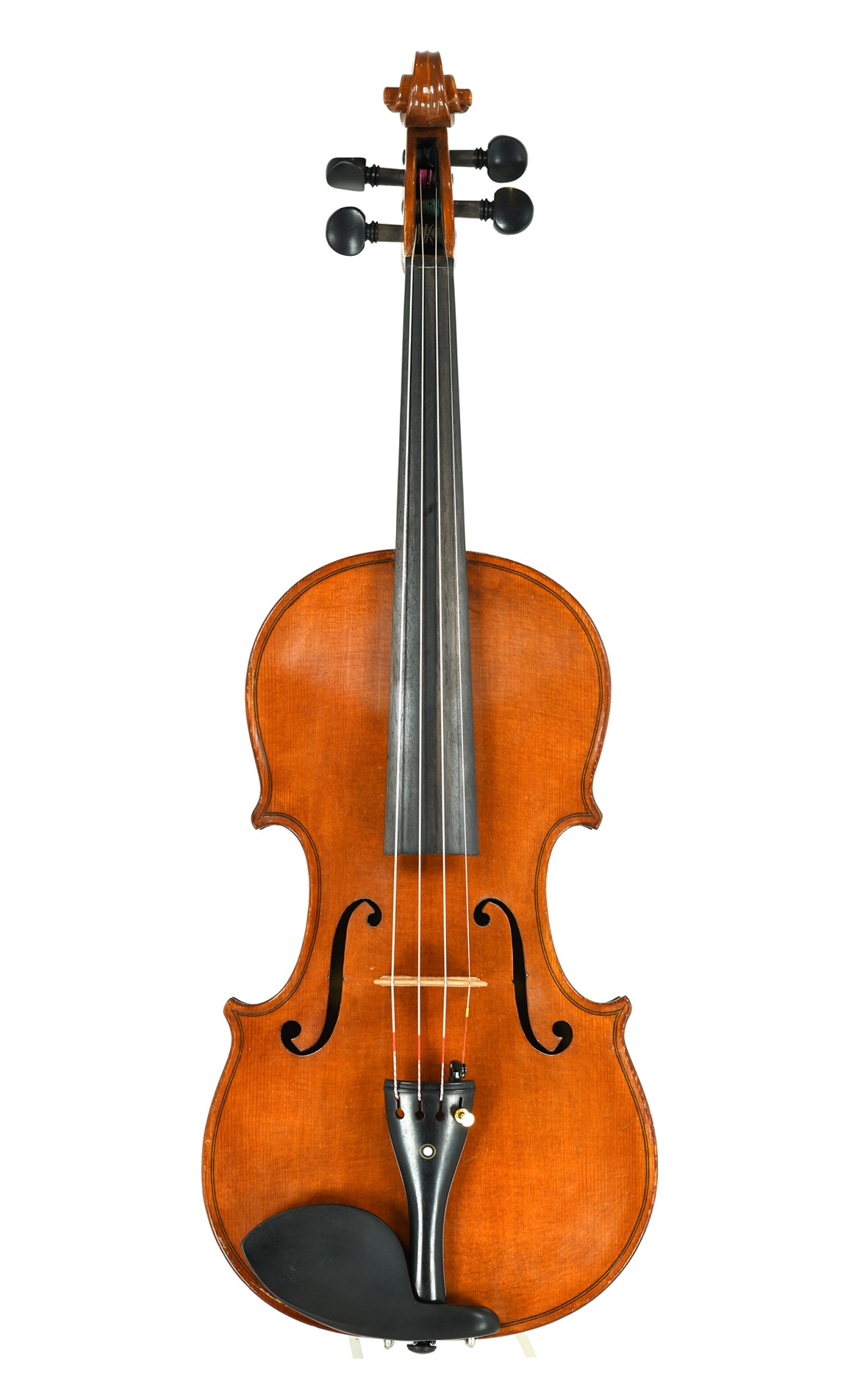 Diese ältere deutsche Geige wurde in den 1940er Jahren in Sachsen in guter Handarbeit hergestellt. Diese hübsche Violine ist ein ausserordentlich kräftig klingendes und leicht zu spielendes Instrument - perfekt erhalten, gepflegt und sofort spielbereit. Das Modell ist nach Antonius Stradivarius. Die Decke ist aus mitteljähriger Fichte gearbeitet, der zweiteilige Boden aus mild geflammtem Bergahorn. Bemerkenswert schön ist die Randeinlage und der glänzende, orangebraune Spirituslack, mit nur wenigen Spielspuren. Diese gute Violine wurde in unserer Geigenbauwerkstatt gründlich aufgearbeitet und ist spielfertig. Dieses für seiner Preisklasse besonders kräftig klingende Instrument hat einen kräftigen, dunklen, klaren und doch warmen und gut ausgeglichenen Klang - gereift, resonant und obertonreich.