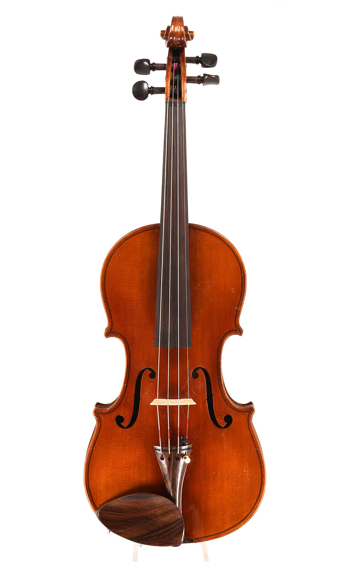 Diese sächsische Geige mit gutem Klang in der Preis- und Qualitätslage entstand um das Jahr 1940 in Sachsen. Die verwendeten Hölzer sind von besonderer Schönheit, insbesondere die Randeinlagen und die regelmäßige mitteljährige Fichte der Decke. Der helle und klare Klang der Geige ist offen, obertonreich, tragend und insgesamt sehr ausgereift und kraftvoll bis in die hohen Lagen. Diese alte...