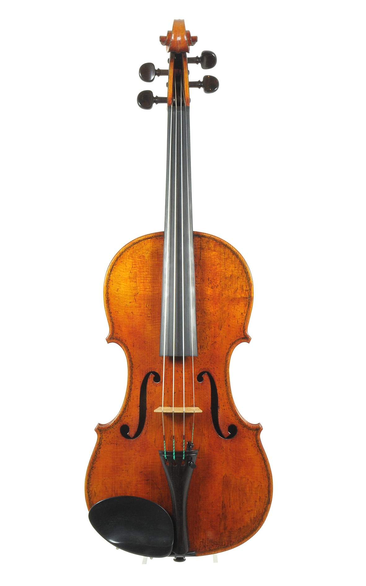 Höchste musikalische Ansprüche erfüllt der sonore Klang dieser rund 60 Jahre alten Meistergeige, eine warme und süße Stimme, die sich durch ihre klingende Resonanz in den oberen Bereichen auszeichnet. Ihr Erbauer, der deutsch-britische Meister Eric Voigt galt in den 1960er Jahren als einer der „berühmtesten Unbekannten“ in der nordenglischen Musikszene. Hier erwarb er sich durch sensible Restaurierungen und erstklassige neue Instrumente wie Eric Voigts Bratsche von 1963 einen guten Ruf, der erstaunlicherweise aber nie weit ausstrahlte. Tatsächlich vereinen seine hochinteressanten Arbeiten Vorzüge aller wichtigen europäischen Geigenbautraditionen. Großen Wert legte Eric Voigt selbst dabei auf das klassische italienische Erbe, das für ihn als handwerklich orientierten, traditionell arbeitenden Meister uneingeschränkte normative Gültigkeit besaß. Diese Wertschätzung artikuliert sich bei der hier angebotenen Violine in ihrem durchdacht konzipierten und eigenständigen, aber unmissverständlich an Guarneri del Gesù orientierten Modell. Zugleich begegnet uns in Eric Voigt aber auch ein Vertreter der sächsischen Geigenbautradition, stammt er doch aus einer großen Markneukirchener Geigenmacherfamilie, deren Wurzeln sich bis ins 17. Jahrhundert verfolgen lassen. Um 1900 zog Erics Vater Paul Arno Voigt nach England, wo er Mitarbeiter von Thomas Earle Hesketh wurde – und in dessen Werkstatt nicht nur Einflüsse des britischen, sondern auch des französischen Geigenbaus aufnehmen konnte, war Hesketh doch selbst ein Schüler des bedeutenden Georges Adolphus Chanot. In dieser facettenreichen handwerklichen Genealogie bilden der englische Stil der sorgfältig geschnitzten Schnecke und der französische Touch ihrer geschwärzten Ränder ästhetische Wegzeichen, während die höchst gelungene Wölbung und die feine Randarbeit eine vollendet geschulte und erfahrene Hand erkennen lassen. Aufwändige Antikisierungen der Decke bestimmen die unverwechselbare Persönlichkeit der rissfreien und in bestem Zustand erhaltenen Geige. Nach einer vollständigen Aufarbeitung in unserer Fachwerkstatt empfehlen wir diese sofort spielfertige, hochwertige Violine als ein präzises, klangschönes Instrument von einem lange zu wenig beachteten Meister seiner Zunft.