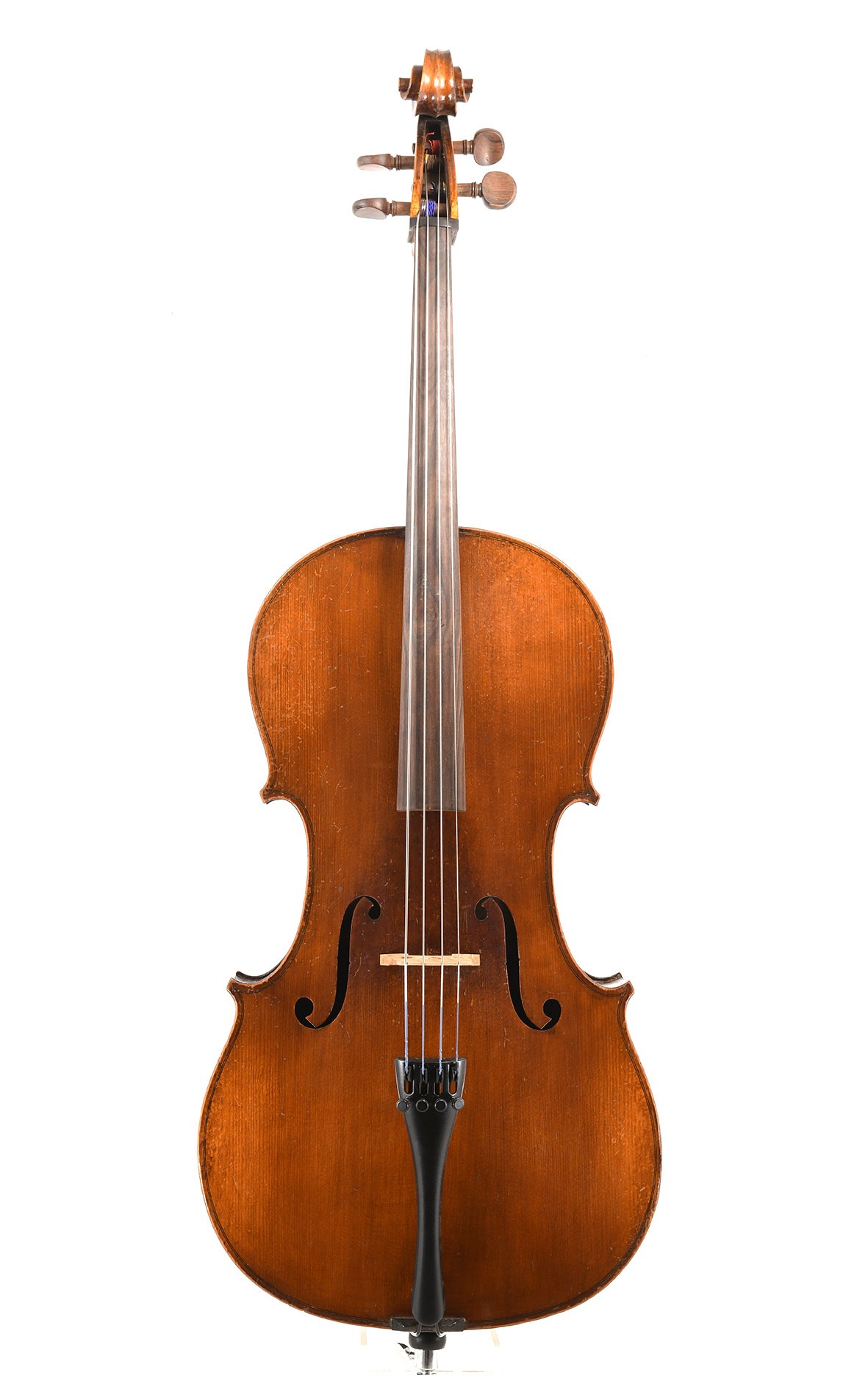 一把法国1/2大提琴,没有标签,典型的是Jérôme Thibouville-Lamy (J.T.L.)著名的Mirecourt工作室。1/2大提琴大约是在1900年左右制造的,由于它的结构质量、舒适的演奏特性和优雅的音色,它是年轻音乐家少有的高品质乐器之一。充满个性的卷轴和明亮透明的浅棕色清漆显示了这些乐器无可挑剔的品质。在这个年代,有很多演奏学生乐器的痕迹,这把古董1/2的大提琴很乐意演奏,它的状况非常好,经过专业的修复后,可以在我们的工作室演奏。这把1/2大提琴的声音优美、明亮、精确,是高要求的乐器训练的最佳伙伴,其高音域的璀璨音色能激发人们的灵感。