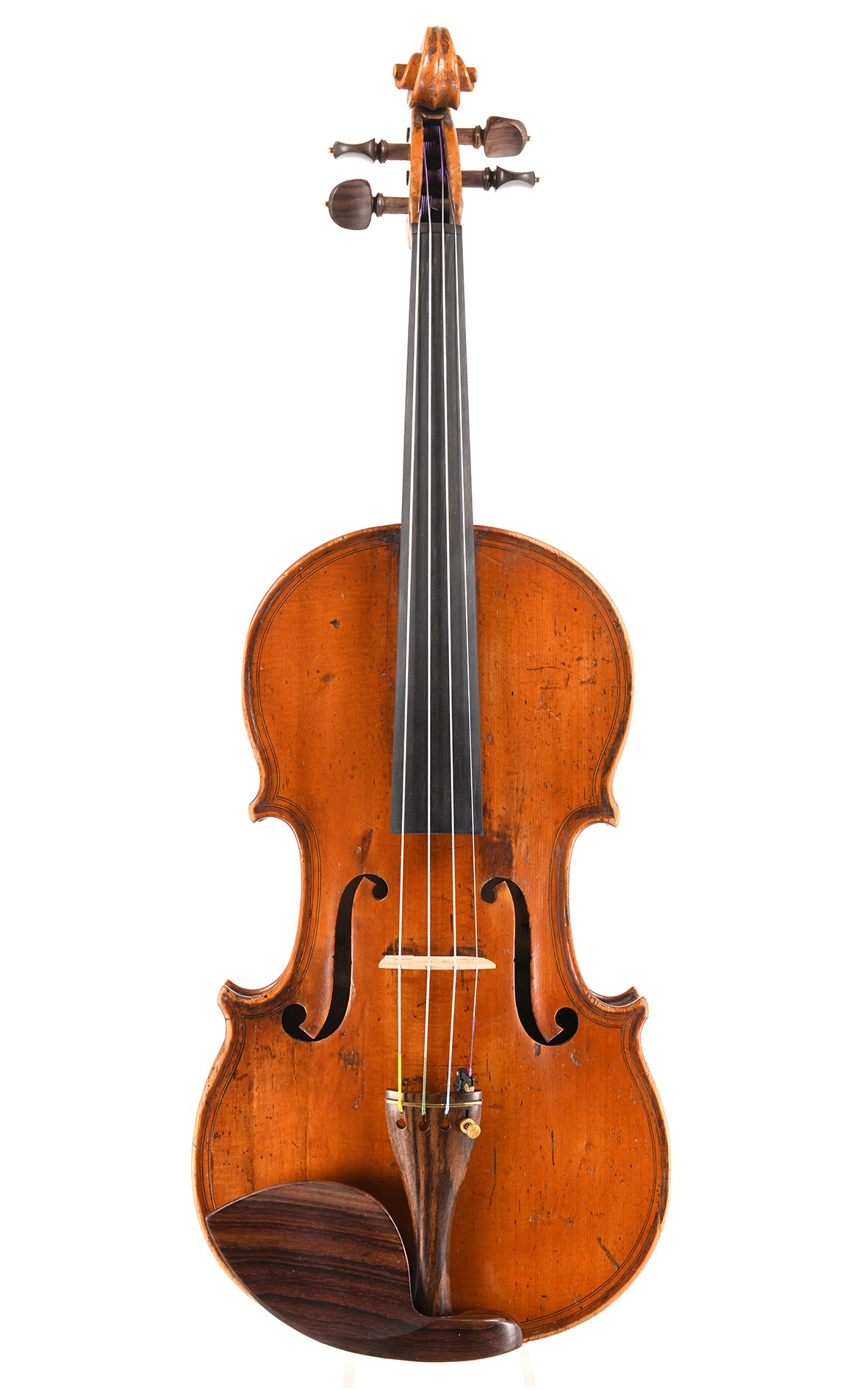 罕见的弗朗索瓦-皮尔莱曼 3/4 制小提琴。这把 Jacquet-Pillement 制作的法国古董 3/4 制小提琴于 19 世纪初在米勒库尔制造,目前保存完好,略有修复,调音部分没有裂缝。这把古董 3/4 小提琴的外观非常高贵,尤其是其橙棕色的漆面和高拱形的琴身。面板由普通云杉制成,一体式枫木背板经过轻微的火焰处理。这把出色的 Francois Pillement 3/4 小提琴的音色宽广、温暖而丰富,高音部分具有辐射性。与我们所有的 3/4 小提琴一样,免费送货、30 天退货政策、可选证书以及 Corilon 的升级和以旧换新保证。