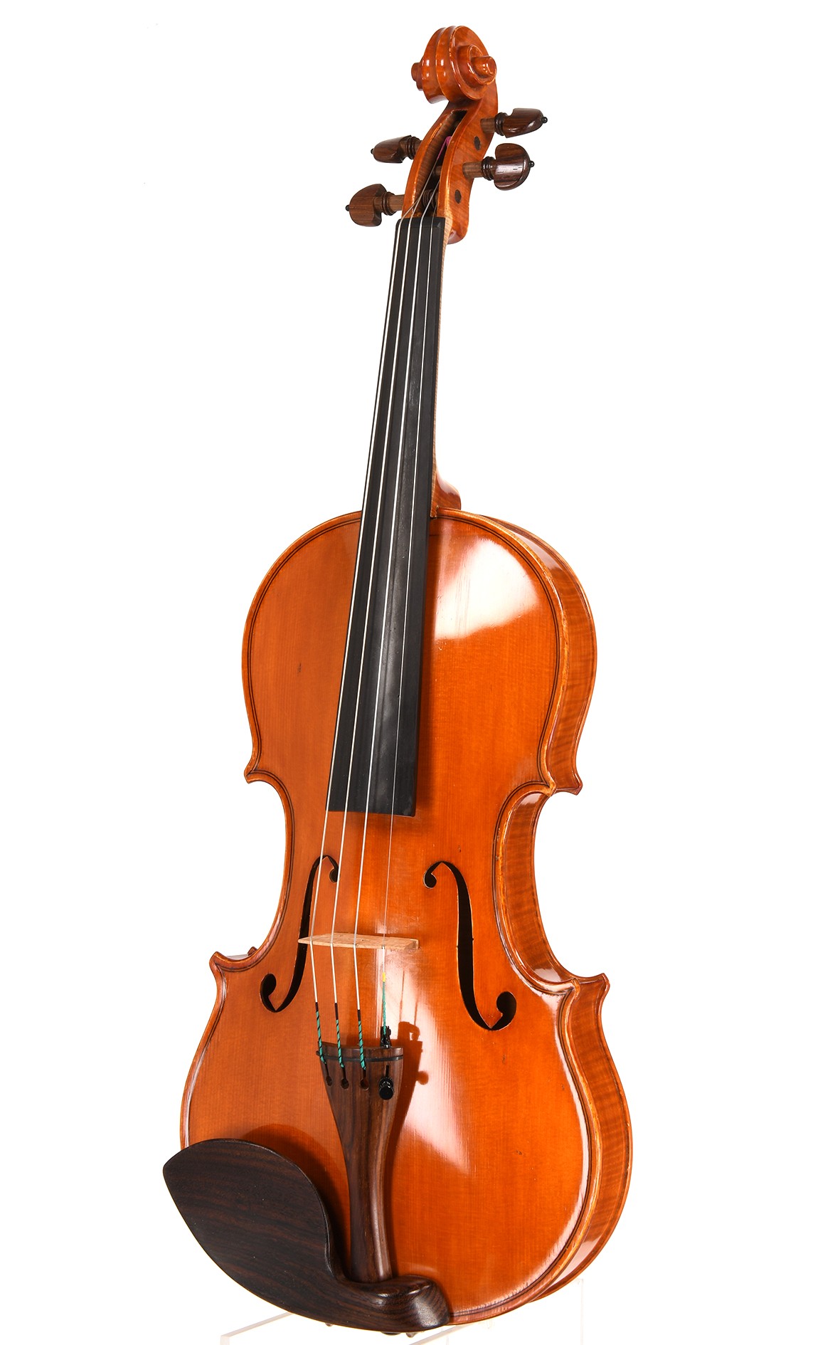 吉尔伯托-洛西的意大利小提琴,1991年在罗马制造。 这把值得推荐的小提琴--带有吉尔伯托-洛西的原始标签,明确无误的意大利血统--具有良好的声音特性,是对高要求的音乐家的推荐。它有趣的优雅美学,以及它富有个性的、大而有神的声音,具有辉煌的力量和美丽的共鸣,是意大利精神的明确体现。这把精美的意大利小提琴是意大利制琴师不妥协的声音取向的典范,在这里表现为对面板和背部拱形结构的娴熟阐述。这把美丽的意大利小提琴被保存在最佳状态,没有裂缝,而且得到了很好的保养。我们的小提琴制作车间的制琴师们精心地将这把有趣的手工琴恢复到现代演奏标准,并使其可以演奏,作为对有眼光的音乐家的特别推荐和机会。与我们所有的乐器和琴弓一样,它有一个可选的价值证书和我们的以旧换新保证。