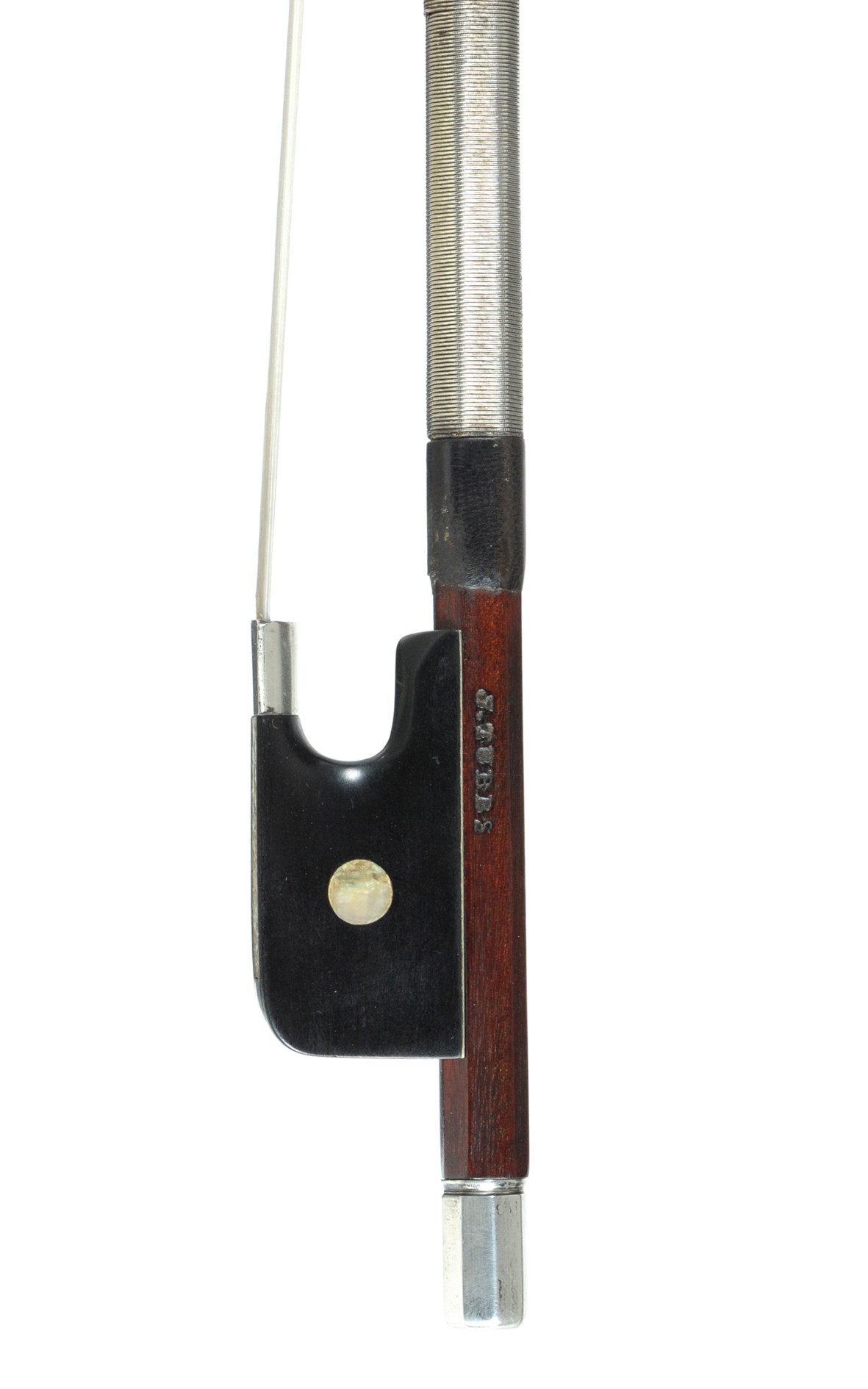 Aus der Londoner Werkstatt von James Tubbs (1835-1921) stammt dieser feine Bratschenbogen, den der Stempel „J. Tubbs“ als ein frühes Werk des großen englischen Bogenbaumeisters ausweist. Für Tubbs eigenständiges Bogenmodell charakteristisch ist der große, schön gearbeitete Kopf; aus...