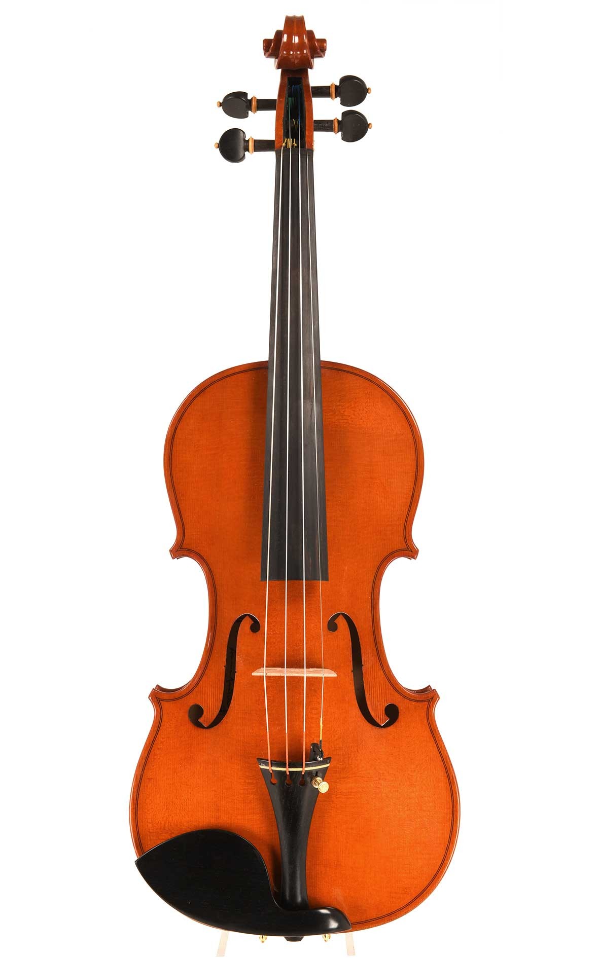 Le luthier crémonais Lorenzo Locatelli a créé ce violon raffiné en 2024 ; son esthétique affirmée et sa sonorité éclatante représentent les meilleures caractéristiques de la lutherie crémonaise contemporaine.