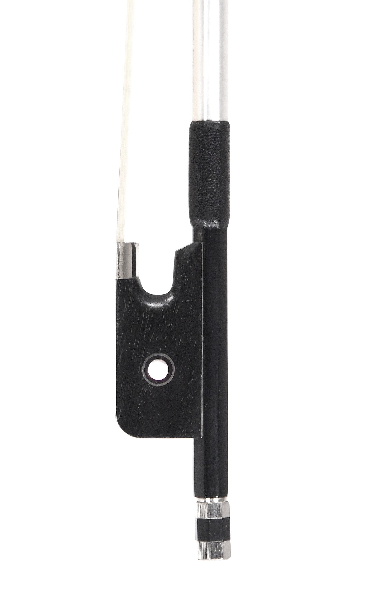 Carbon bow for viola – Carbon fiber viola bow, selected by professional musicians and violin makers for the “CV Selectio” portfolio: A carbon fiber viola bow that is a joy to play, with a bright, clear tone and excellent value for money. Carbon fiber viola bows have also established themselves in the world of the viola and impress beginners, advanced players, and professional violists with their robust quality, excellent balance, and superb sound characteristics. With our team of violin-making experts and professional musicians, we have selected this carbon viola bow for our “CV Selectio” portfolio from a growing number of interesting offerings, as it combines many good qualities: Its perfectly defined center of gravity in the upper half of the surprisingly powerful carbon fiber stick gives it extremely pleasant playing characteristics. Active and responsive, it produces a bright, clear tone that has an excellent effect on the tonal profile of violas that tend to sound dull and imprecise. Last but not least, it offers these advantages at an unbeatable price, making it a special opportunity for students and advanced amateurs as well as a good second bow for professionals.
