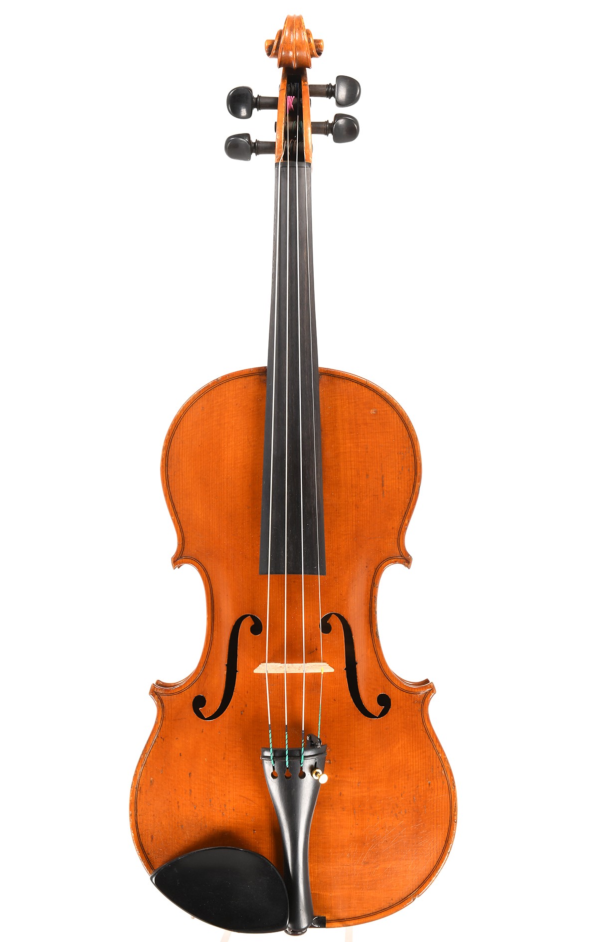 This expressive Jeffery James Gilbert violin with a wonderful sound plays a special part in the oeuvre of this remarkable artistic personality and in some ways can be considered his masterpiece. Crafted in the year 1886, it ranks amongst the instruments with which J. J. Gilbert completed his informal training. As the son of an old Kentish family, he was not permitted to undergo a luthier's standard training since his father had intended for him to pursue another professional path. However, in his interactions with outstanding masters and aficionados of the craft he aspired to, Gilbert found sources of guidance and patrons who helped the highly talented young man with a burning passion for his art to become the exceptional artist whose mastery can be seen in this instrument, his op. 47 – around the time he won a number of silver and gold medals at major exhibitions. The violin's aesthetically appealing and elegant model is defined by its unmistakable and highly distinctive model and reflects the multi-facetted influences which Gilbert studied and integrated into his personal style. Made of the finest tone woods, most notably the flamed maple of rare beauty used for the two-piece back, the perfectly crafted body features broad bee-sting corners and exquisitely applied purfling. Inside the instrument is J. J. Gilbert's dated original label and signature, leaving no doubt about the authenticity of this violin. The orange-brown oil varnish was specially formulated, a topic that was of great fascination to Gilbert throughout his entire career, and over the course of time opus 47 developed charming crackling. Received in undamaged condition, this historic violin has an aesthetic that is a flawless match for its mature sound whose clarity and warmth round out the beguiling personality of the instrument.