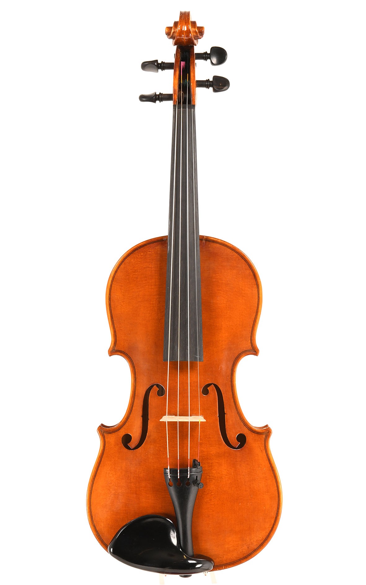 This old 3/4 Mittenwald violin with an outstanding sound was crafted in 1968 by Erich Sandner in Mittenwald, the successor of the well-known master Johann Reiter that continued to use Johann Reiters label. This provenance is not only indicated by the original label, but also by typical texture of the transparent, orange-brown colored varnish, that covers the Stradivari styled small-sized violin that was made in affordable quality. Both the well crafted purfling and the good quality of the selected tonewoods, that is demonstrated impressively by the flamed sycamore maple of the two-piece back, can be seen as characteristic attributes of Erich SandnerĀ“s workshop. This 3/4 Mittenwald violin is offered in excellently preserved condition and was carefully worked over by our experienced luthiers; ready to play it unfolds its strong and clear sound, that is rich in overtones and bright in character. Like all violins from us, this includes our trade-guarantee which is especially interesting to our customers of small-sized instruments.