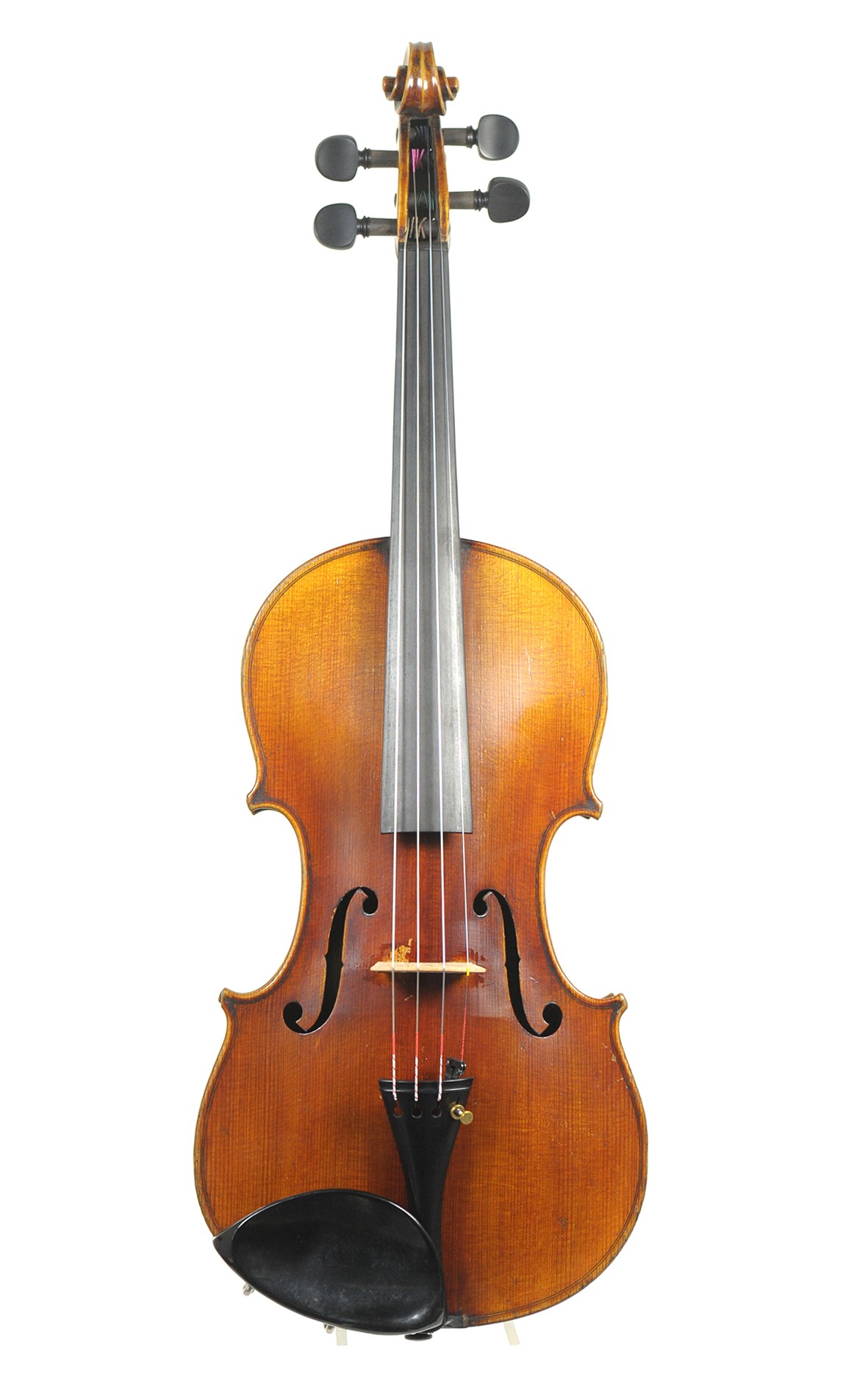 This old German violin is a straightforward instrument that convinces with its beautiful sound and good playing properties and its visual aesthetic. It is an instrument from the German violin making town Markneukirchen, where it may have been built in the 1910's, a typical example of good quality manufactured violins made around the turn of the century that are completely crafted by hand. The model is designed after well-proven Stradivari patterns. The violin has been well played and is preserved with minor varnish flaws in crackfree condition. We offer this surprisingly good sounding instrument ready to play after a complete work-over in our workshop, ready to unfold its warm, balanced sound, that features good resonance.