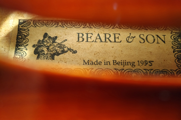 In der Tradition des modernen italienischen Geigenbaus steht diese hochwertige Violine, die in den 1990er Jahren für das renommierte britische Unternehmen Beare & Son gebaut wurde. Ein glanzvoller, weicher Öllack lässt jedes Detail der auffallend schönen Tonhölzer sichtbar werden und betont dabei auch die gekonnt inszenierten, feinen Unregelmäßigkeiten des kraftvoll geflammten Ahornbodens, die dem Instrument seine unverwechselbare Individualität verleihen. 1995 in Peking gebaut, demonstriert diese ausgezeichnet gelungene, am venezianischen Meister Eugenio Degani orientierte Arbeit exzellente Handwerkskunst und geigenbauerische Sensibilität, mit der die besten chinesischen Werkstätten anspruchsvolle Kunden in aller Welt überzeugen. Eine hübsche Schnecke mit geschmackvoll geschwärzten Rändern, die tadellos gearbeitete Randeinlage und fein geschnittene F-Löcher in der Decke aus interessant gemaserter, mitteljähriger Fichte runden die Erscheinung dieser Violine ab. Ihr strahlend schöner Klang ist von einer Reife und Wärme, die bei einem so jungen Instrument überraschen und – in der Hand eines versierten Musikers – eine interessante Entwicklung versprechen. Ein handschriftlich datierter Original-Zettel von Beare & Son belegt, dass das Instrument nach den strengen Qualitätsmaßstäben dieses Traditionshauses geprüft wurde. Unbeschädigt und perfekt erhalten wurde die Geige in unserer Werkstatt umfassend aufgearbeitet und spielfertig hergerichtet – als unsere besondere Empfehlung für fortgeschrittene Violinisten, die nach einem klanglich attraktiven, soliden und wertbeständigen musikalischen Partner suchen.