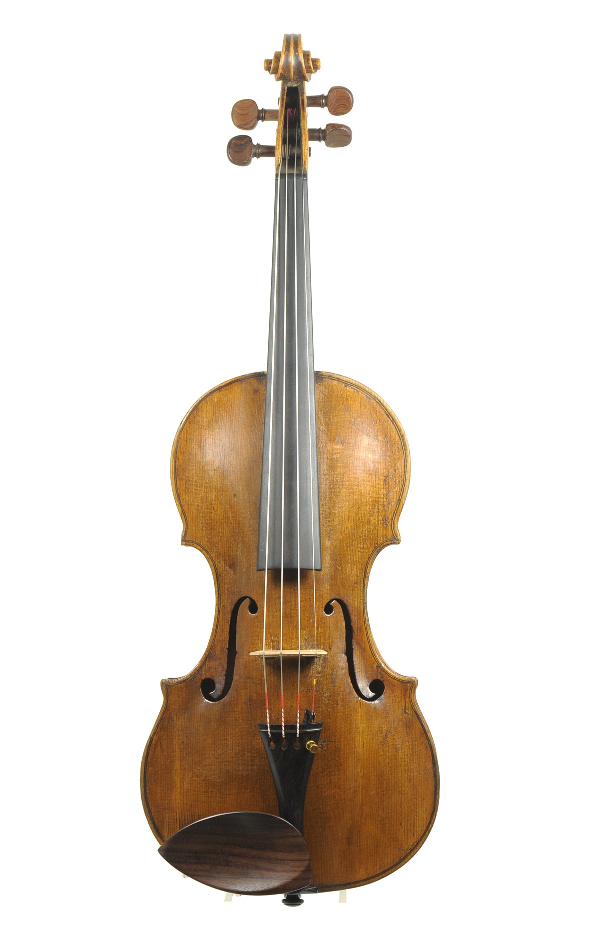 Mit ihrem feinen, flötig-silbrigen Klang und ihrer vorzüglichen handwerklichen Qualität erweist sich diese schlanke, hochgewölbte Geige aus Mittenwald als echtes Meisterinstrument, das um 1750 in Mittenwald gefertigt wurde. Zierliche F-Löcher und ein kleines, schlankes Modell bestimmen den eleganten Stil des Instruments. Die zarte, nah am Rand ausgeführte Randeinlage akzentuiert die feinjährige Fichte der Decke und den sehr mild geflammten, fast blanken Ahorn des zweiteiligen Bodens; einfache und sehr gut gewählte Tonhölzer erster Tonqualität, die ein honigbrauner, deckender Lack verziert. Die charaktervolle Schnecke ist die selbstbewusste Arbeit einer versierten Hand, die auch den Wirbelkasten mit größter Sorgfalt geschnitzt hat. Die Violine trägt die Inventarnummer der renommierten Firma W. E.Hill & Sons im Griffbrett, welche das Instrument dem Mittenwalder Meister Johann Ulrich Fichtl zuschreibt. Wir haben einen feinen Deckenstimmriss, sowie einige Decken- und Zargenschäden dieser interessanten Johann Ulrich Fichtl Violine restauriert und das Instrument in unserer Fachwerkstatt gründlich aufgearbeitet. Mit ihrer resonanten, gereiften, silbrigen Stimme überzeugt diese charaktervolle Meistergeige besonders anspruchsvolle Spieler der Barock- und Kammermusik.