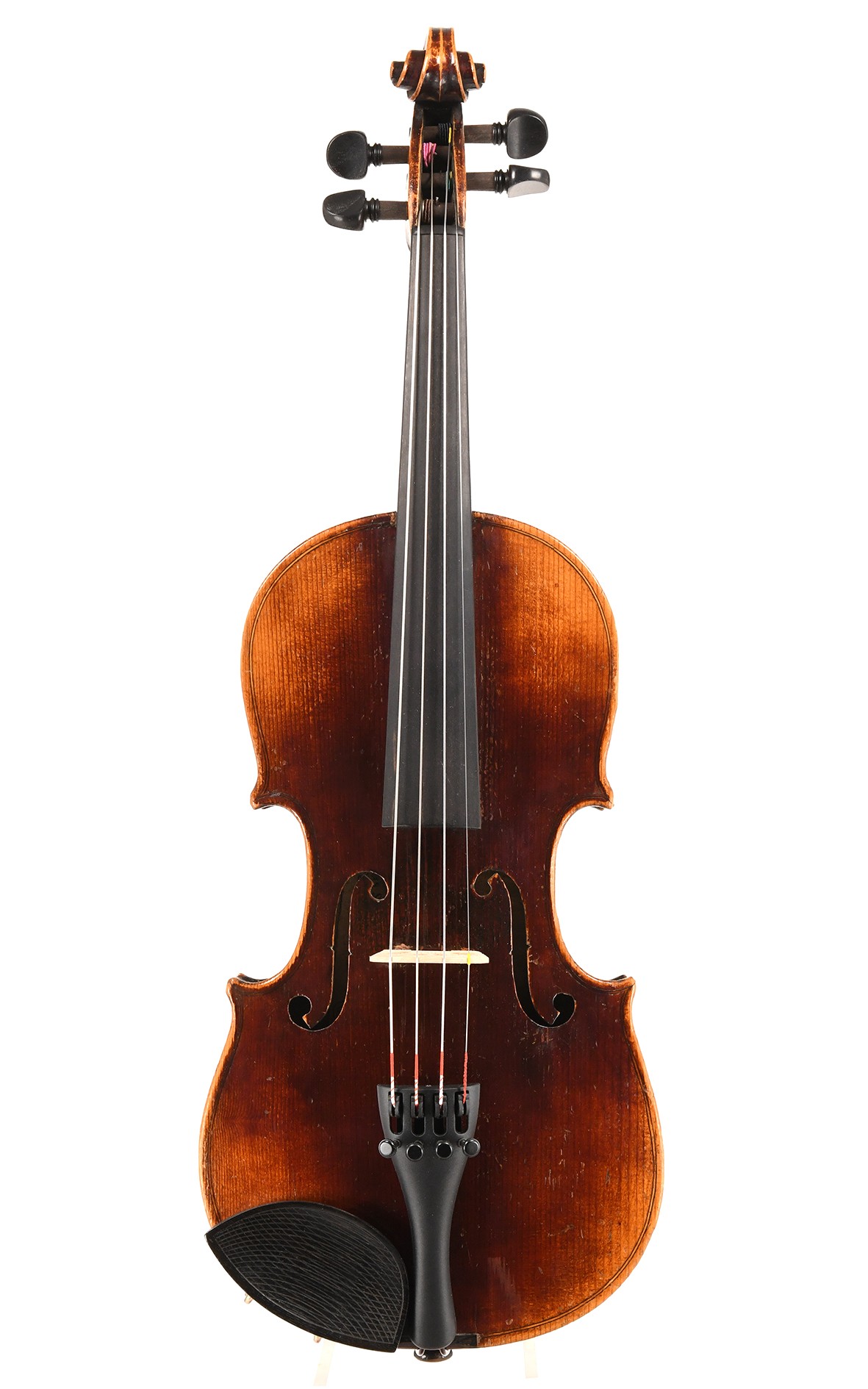 Antike Kindergeigen wie diese um 1880 in Markneukirchen gebaute 1/2 Geige sind echte Raritäten, die oft mit besonders guten, reifen Klangeigenschaften begeistern. Diese mittehoch gewölbte halbe Geige mit rotbraunem Lack und einer Randarbeit, wie es für Markneukirchener Geigen typisch ist, ist ein gut gelungenes antikes Streichinstrument, das als unverwechselbare Besonderheit seine elegante, auffallend schöne Schnecke hat. Die 1/2 Geige ist unbeschädigt und wurde vollständig von unserem Geigenbauer aufgearbeitet; ihr Lack zeigt Spielspuren und Patina, die für ein Instrument dieses Alters charakteristisch sind. Mit neuen Wirbeln und einem Kinnhalter aus Palisander bieten wir diese antike halbe Geige in sofort spielfertigem, rissfreiem und unbeschädigtem Zustand an. Gereift und warm ist ihr dunkler Klang, der in den unteren Bereichen gutes Volumen aufweist, in den oberen sehr fein und präzise ist - Klangeigenschaften, die bei Kindergeigen selten zu finden und entsprechend empfehlenswert sind.
