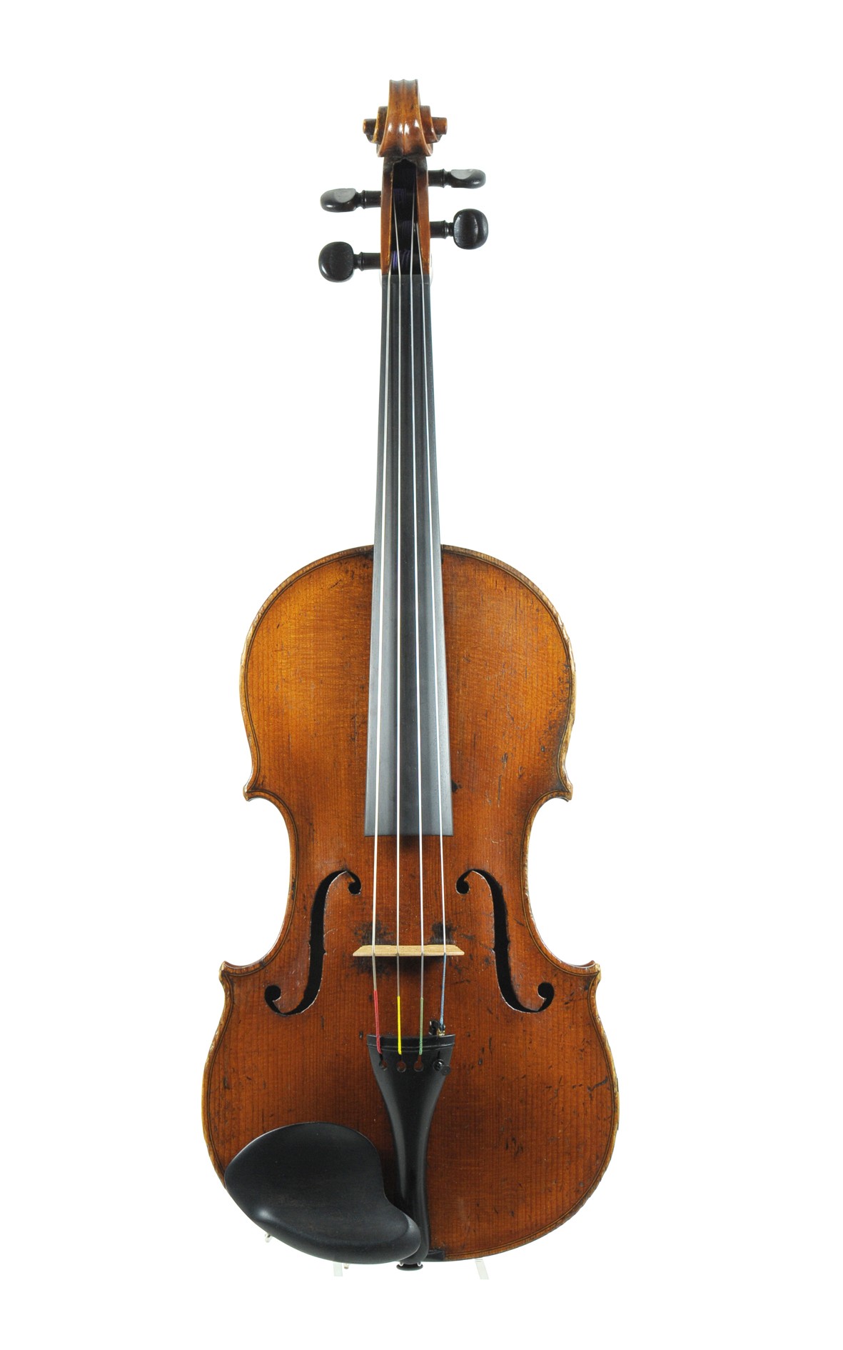 This outstanding Klingenthal viola made its way to us from the estate of a professional musician. With its perfect response on every string and its resonant, absolutely balanced sound, it ranks amongst the finest violas in our catalogue. At a small body length of 38.1 cm, it is very pleasant to play and offers potential for virtuoso interpretation in a manner that very few other violas can. Its musical qualities are further confirmation of the good reputation that early 19th-century Klingenthal stringed instruments enjoy amongst demanding musicians. Such instruments reflect the high standard of the Klingenthal guild at that time, where it was common not to indicate craftsmen by name on the label. This viola can be regarded as an example of premium artisanry, not least because of its narrowly flamed one-piece maple back and the lovely carving of the strong grafted scroll. We received this instrument in perfect condition, and our experienced luthiers set it up completely. It is now ready to play, and we give it the highest recommendation because of its precise, resonant and complex voice which fills the room with a sophisticated character and a great richness in timbre.
