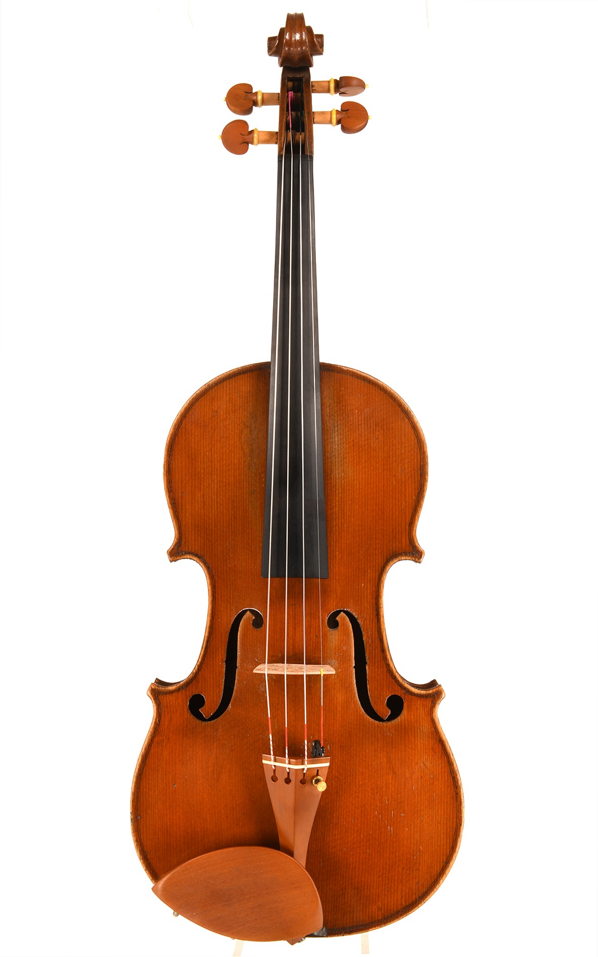With the coveted "Médio Fino" series, the J.T.L. ateliers in Mirecourt offered solid instruments of a simpler standard, but with very good musical characteristics. Accordingly, many "Médio Finos" still available today bear intensive signs of use, and specimens like the one offered here, affordable with minor flaws, are exceedingly rare. The typical instrument, built after a broad model with indicated purfling, was made around 1900. With its attractive two-piece back, red-brown varnish, this antique violin is visually very appealing. Clear and powerful is the sound of this old French violin.