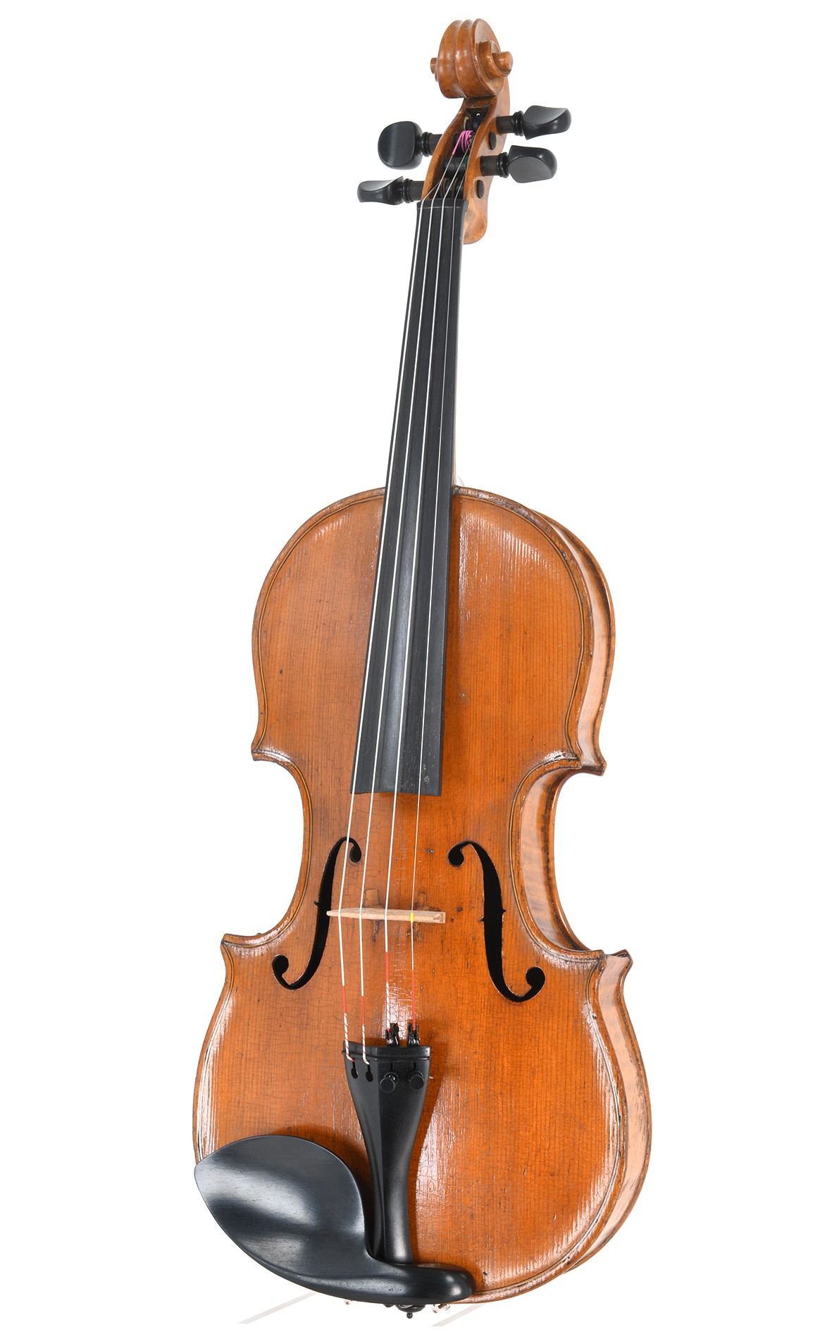 This very beautiful Scottish violin was crafted by J. Clark in Glasgow at the end of the 19th century. Although it is a relatively young antique instrument, it stands out for its delicate historic appearance. The fine craquellée gold-brown oil varnish tastefully highlights the mild flaming of the two-piece maple back; applied generously,...