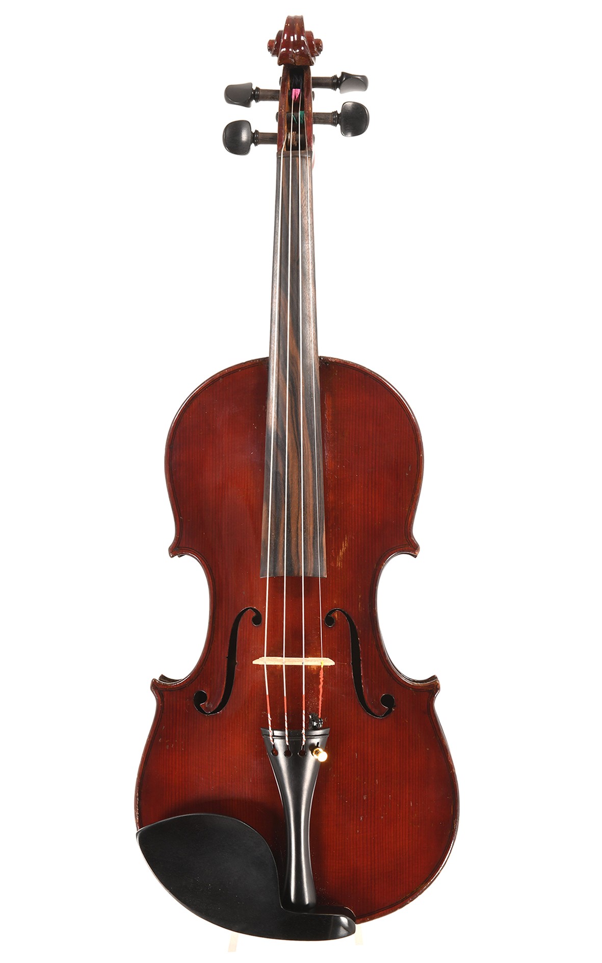 Italian violin from Cremona with bright, carrying tone. This affordable old Italian violin comes from the Officina Claudio Monteverde Antonio Lechi and was made in Cremona in 1923. The model is idiosyncratic in appearance with quite beautiful, graceful soundholes and a delicate, small scroll. The oil varnish is of deep luminous orange-brown color over golden ground, the varnish overall patinated and well preserved with retouching and playing marks. This Italian violin has been overhauled by our luthier and is ready to play without any restrictions. This pretty Antonio Lechi violin has a big, bright, brilliant and very carrying strong sound and suits good players with strong bowing.