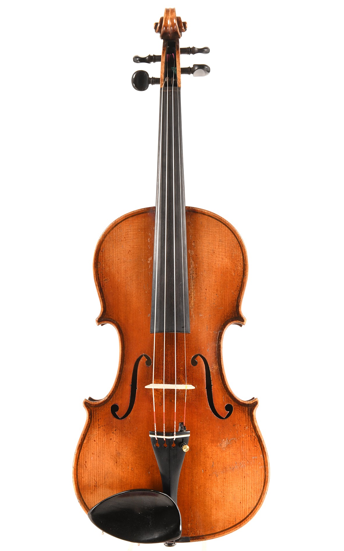 Groß und warm ist der Klang dieser vor über 100 Jahren gefertigten Geige, die wohl in dem renommierten Hause August Clemens Glier gebaut wurde, ein gelungenes Instrument Cremoneser Tradition. Das Modell ist nach Antonius Stradivarius mit flach gehaltener Wölbung gefertigt. Als Deckenholz wurde auffallend schöne, mitteljährige Fichte verwendet, für den zweiteiligen Boden geflammter Ahorn. Der glanzvolle Lack mit vielen Spielspuren ist von einer hellbraunen Farbe über goldgelbem Grund. Besonders auf der Decke zieren die gelungenen Antikisierungen und viele Spielspuren unterstreichen den antiken Charakter dieser klangvollen Violine. Das rissfrei erhaltene alte Streichinstrument wurde in unserer Geigenbauwerkstatt aufwändig aufgearbeitet und ist spielfertig. Der reife, resonante und obertonreiche, klingende Klang mit einer warmen, gereiften Note.