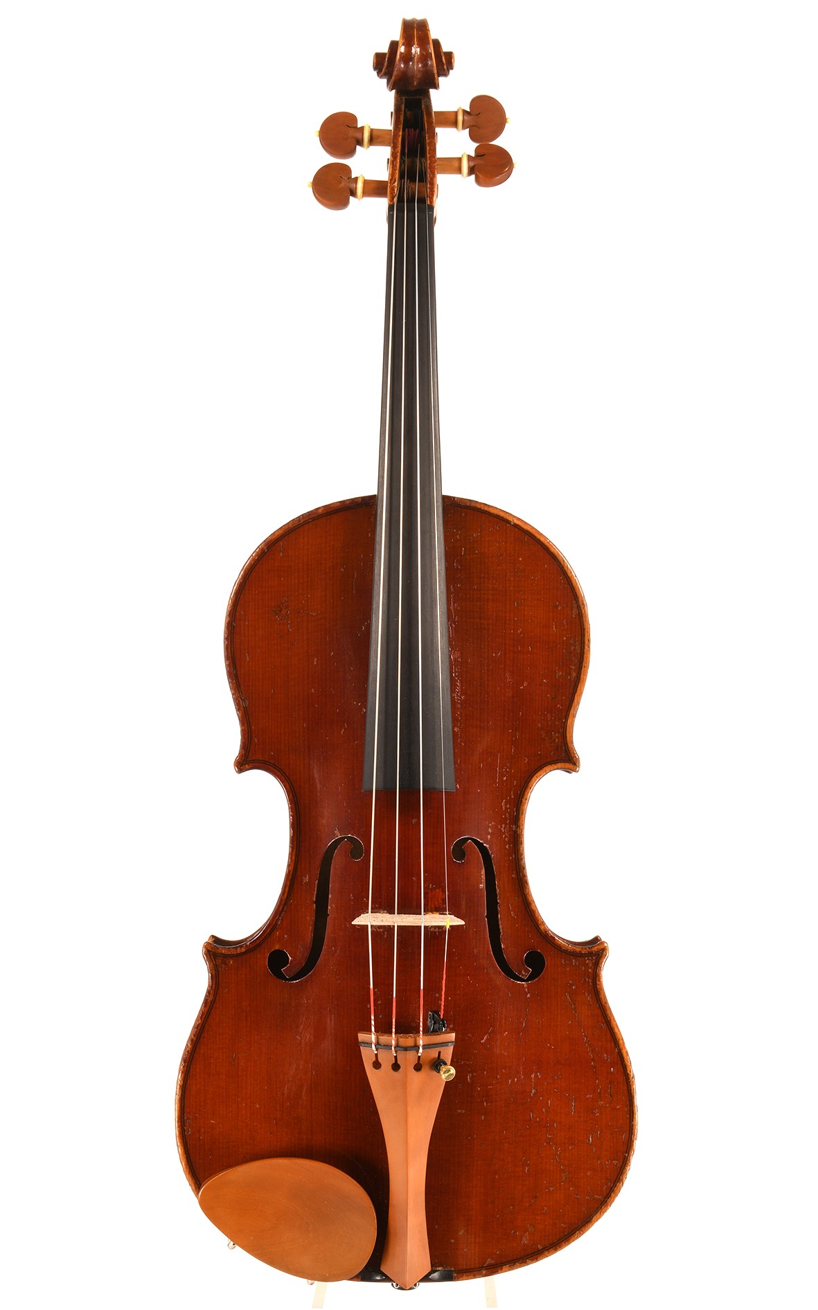 Die Geige wurde um 1900 Jahren nach einem edlen Amati Modell gebaut, das unter anderem an der sanft ausgearbeiteten Wölbung und den typisch geformten F-Löchern zu erkennen ist. Die sanfte...