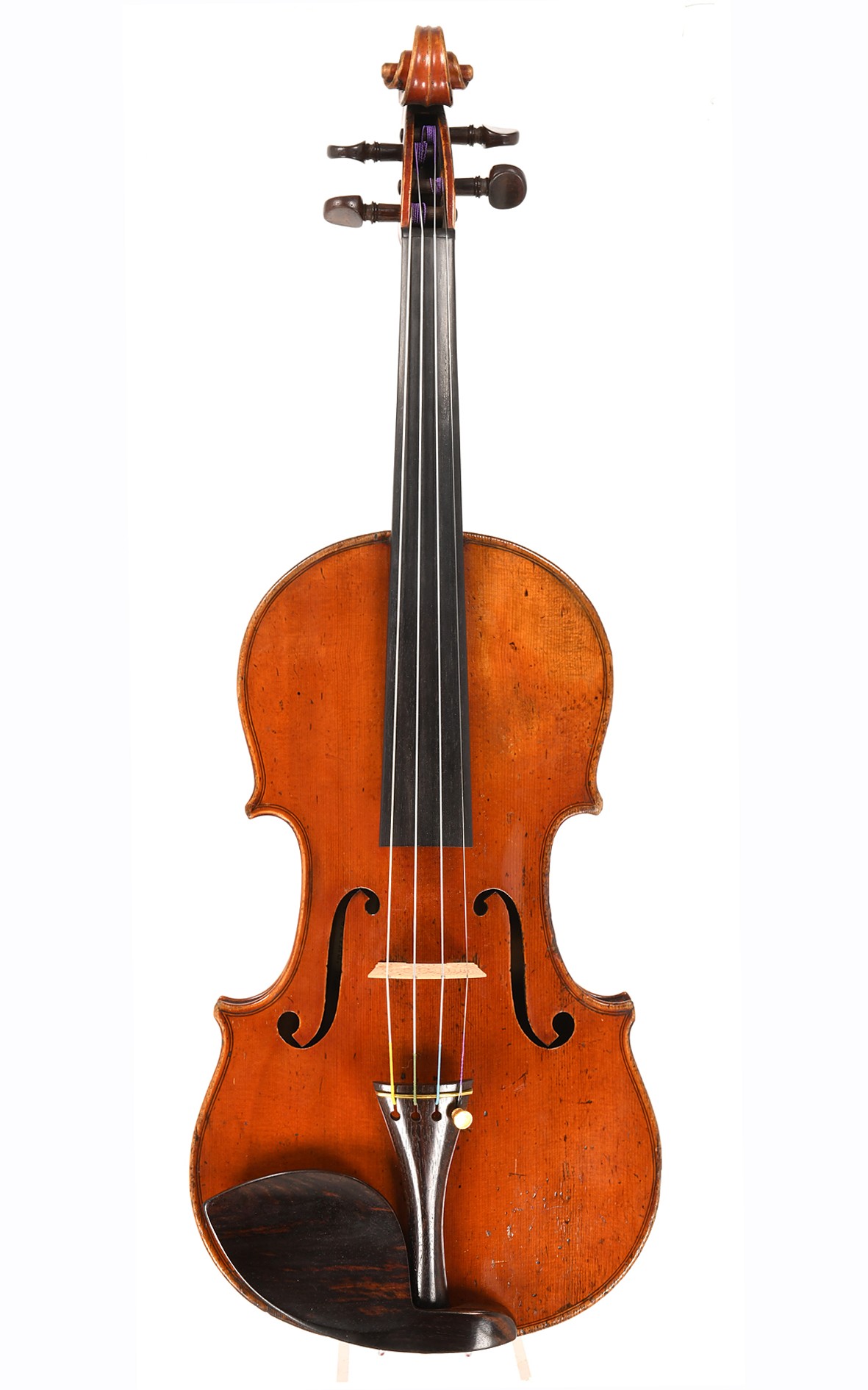 Als reife Arbeit des Pariser Meisters Jacques-Pierre Thibout eröffnet diese erstklassige Meistervioline einen interessanten Einblick in den französischen Geigenbau des 19. Jahrhunderts. Der aus dem normannischen Caen stammende, vielfach ausgezeichnete Meister Jacques-Pierre Thibout ist der Tradition des „französischen Stradivarius“ Nicolas Lupot zuzurechnen, jener Linie also, die im historischen Rückblick oft im Schatten der dominierenden Schule und Werkstatt Jean-Baptiste Vuillaumes steht – und das sehr zu Unrecht, wofür gerade das Werk Jacques-Pierre Thibouts als Zeuge aufgerufen werden kann, dessen Geigen schon um die Jahrhundertwende ähnlich gefragt waren wie alte italienische Instrumente und sogar vergleichbare Preise erzielten. Manche Thibout Geige wurde von gewieften Wiederverkäufern zudem erfolgreich als Meisterwerk Lupots ausgegeben, und tatsächlich braucht der 1796 nach Paris gezogene Geigenbauer keinen Vergleich mit seinem offenkundigen Vorbild zu scheuen. Die hier angebotene Violine, deren Authentizität ein Zertifikat des renommierten Stuttgarter Experten Hieronymus Köstler bestätigt, fällt unmittelbar durch die geschmackvoll gewählten, charaktervoll gemaserten Tonhölzer auf, deren Struktur ein vollendet schöner, orangebrauner Öllack über einer hellen Grundierung veredelt. Der einteilig ausgeführte Ahorn-Boden und die sehr markanten Ecken, nicht zuletzt aber die äußerst fein ausgearbeitete Schnitzerei der ausdrucksstarken Schnecke demonstrieren die umfassenden geigenbauerischen Fähigkeiten und die künstlerische Sensibilität Jacques-Pierre Thibouts in dieser unverkennbaren Ausführung seines persönlichen Modells, das zu den interessantesten zeitgenössischen Lupot-Interpretationen gehört. Die lange Zeit von fast zwei Jahrhunderten hat dem Lackbild eine zarte Patina und feines Craquellé verliehen; kleinere Nutzungsspuren an dieser offensichtlich viel gespielten Jacques-Pierre Thibout Geige berichten von ihrer langen musikalischen Existenz. Sofort spielfertig nach einer gründlichen Durchsicht in unserer Werkstatt, bei der wir uns von der Solidität und musikalischen Unbedenklichkeit eines sorgfältig ausgeführten Deckenstimmfutters, wahrscheinlich aus dem Hause Beare & Son, überzeugt haben, begeistert diese historische Meisterarbeit mit ihrem warmen, großen Klang, der Jacques-Pierre Thibouts präzises Studium der des klassischen italienischen Geigenbaus erkennen lässt und mit seinem gereiften, strahlenden Charakter selten zu findende Interpretationsmöglichkeiten erschließt.