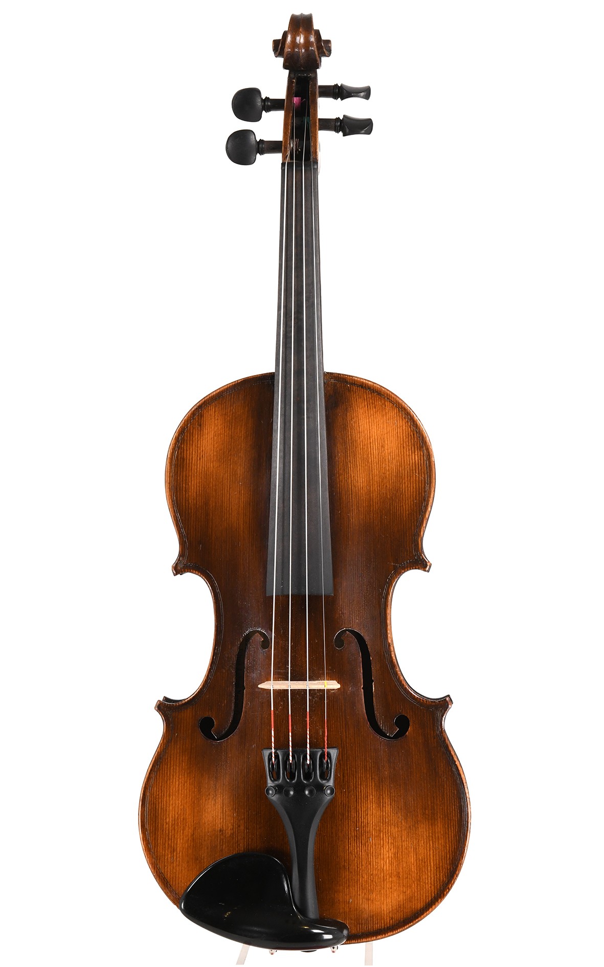 In den bekannten Werkstätten von Jérôme Thibouville-Lamy (J.T.L.) in Mirecourt wurde um die Jahrhundertwende diese antike französische Geige mit schönem Klang gefertigt, ein typisches Instrument nach Stradivari in breiter Ausführung. Die mittelhoch gewölbte Violine zeigt ein vom hohen Alter und vielen Spielspuren und...